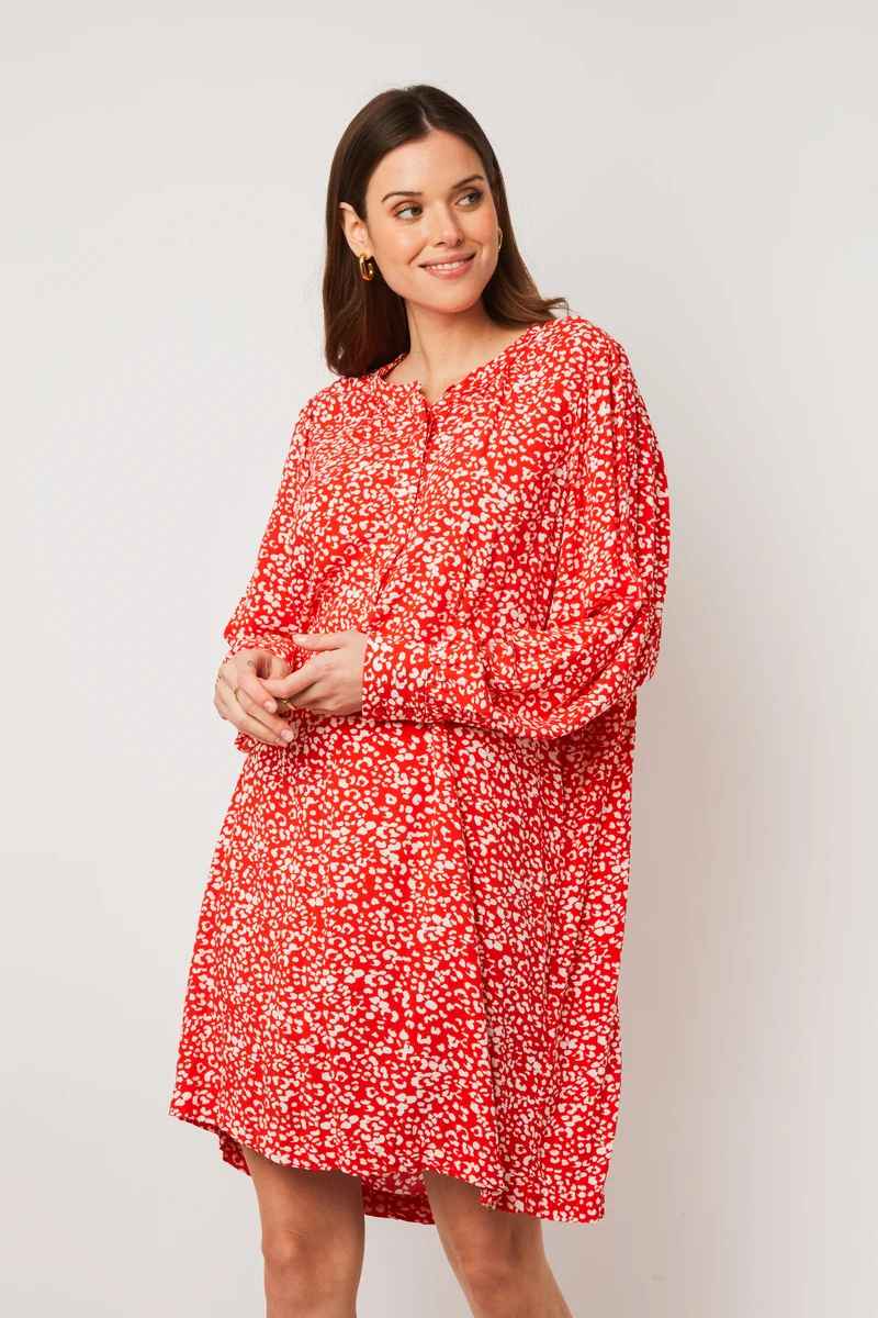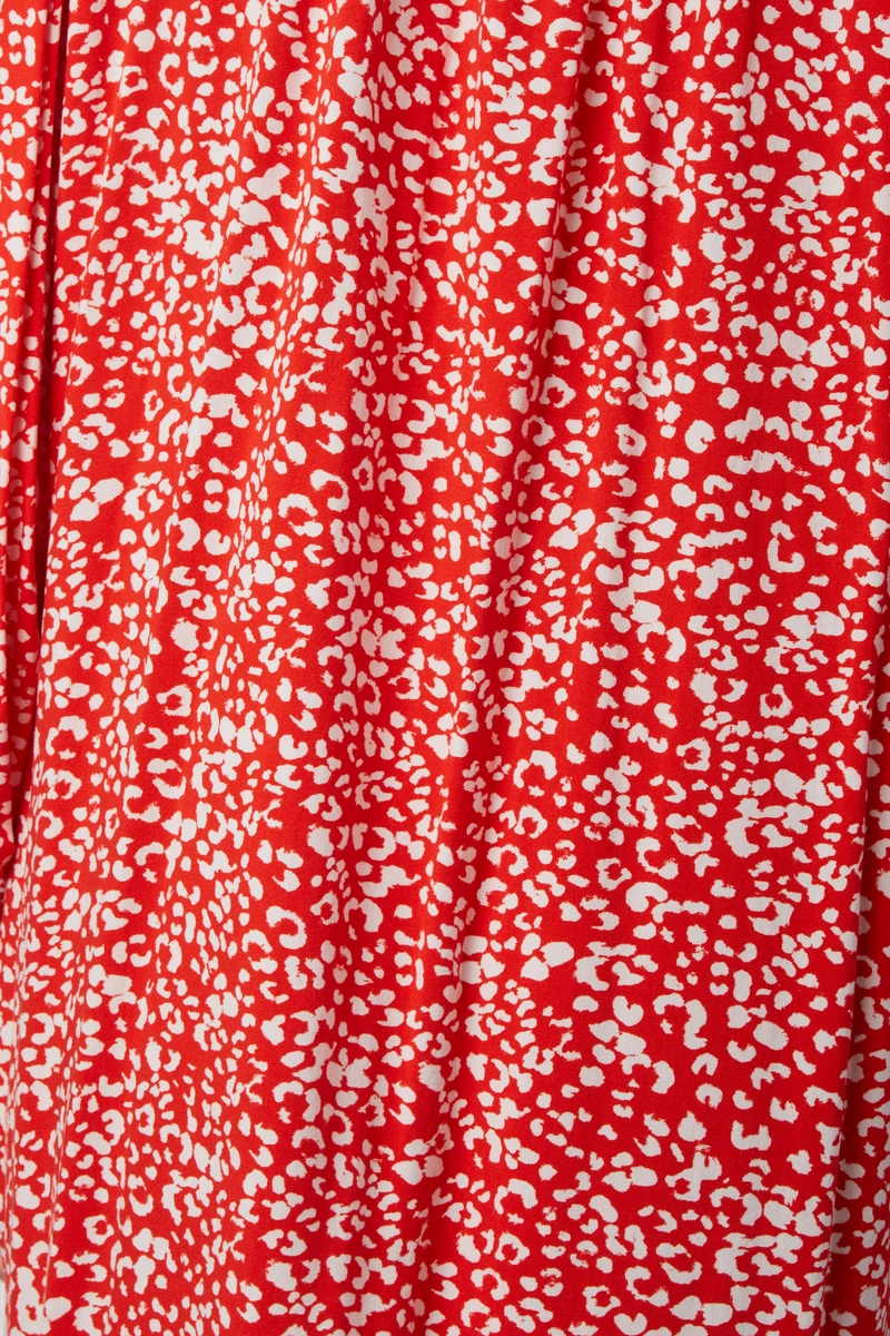 • Ses imprimés léopards blancs sur fond rouge apportent de l’originalité à votre tenue
