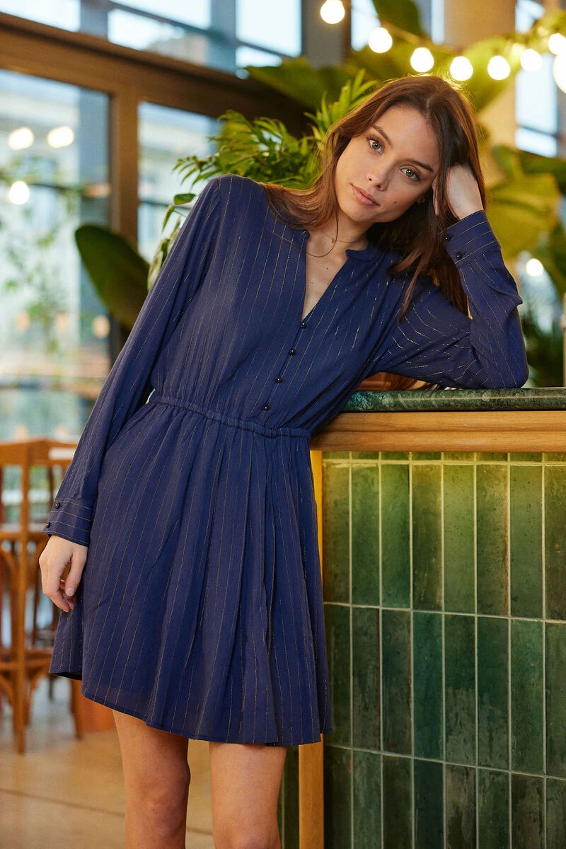 • Robe à manches longues Imprimés rayures pailletées