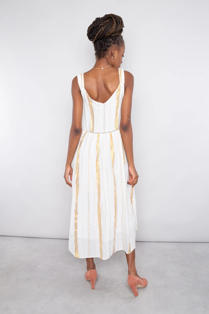 Louise Misha Robe Boha White & Gold Stripes