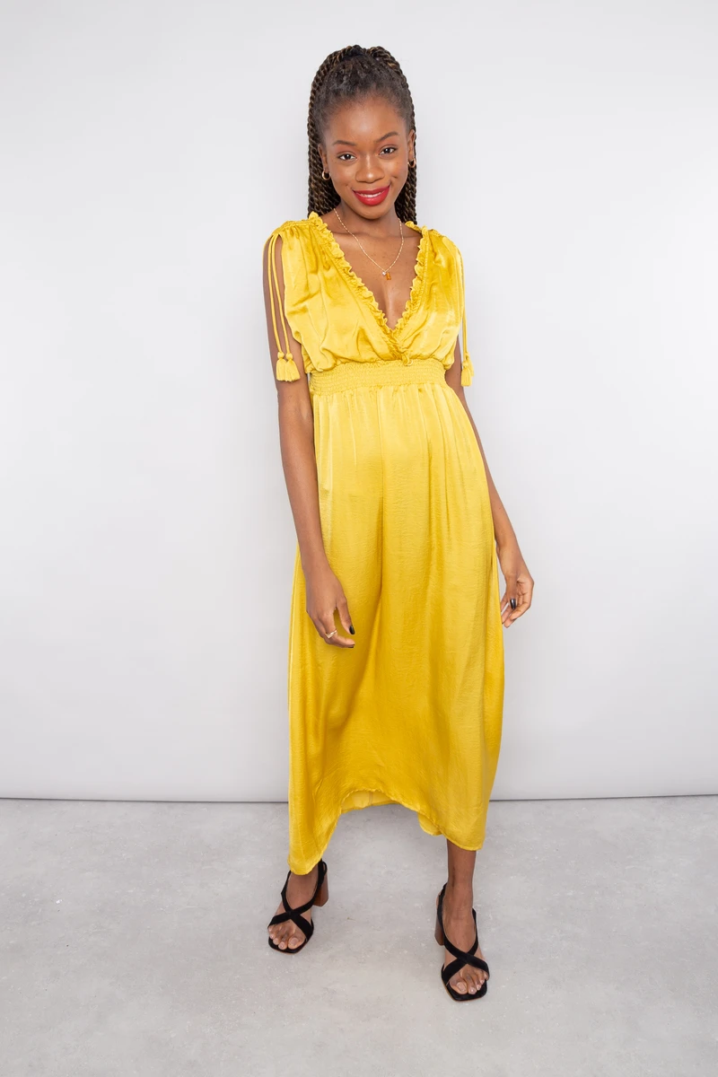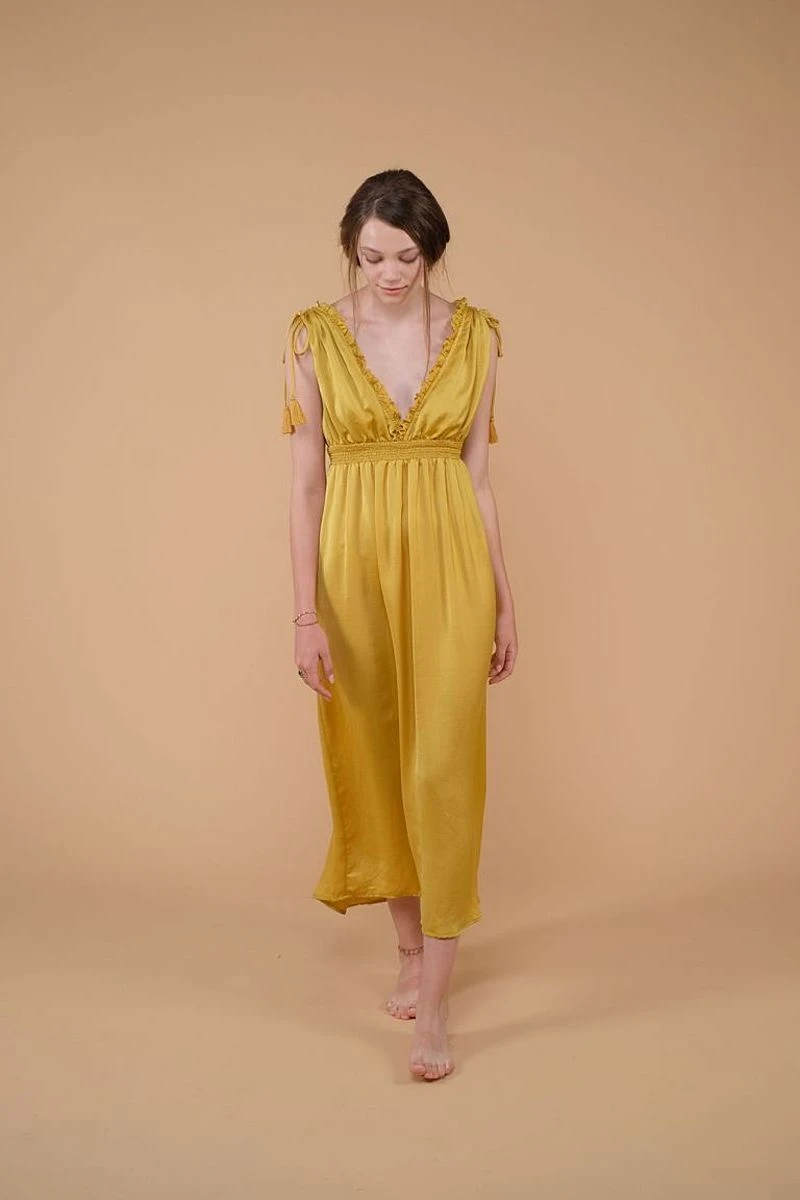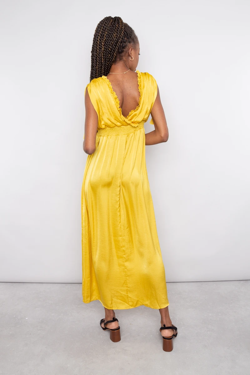 • Robe fluide sans manches de couleur miel