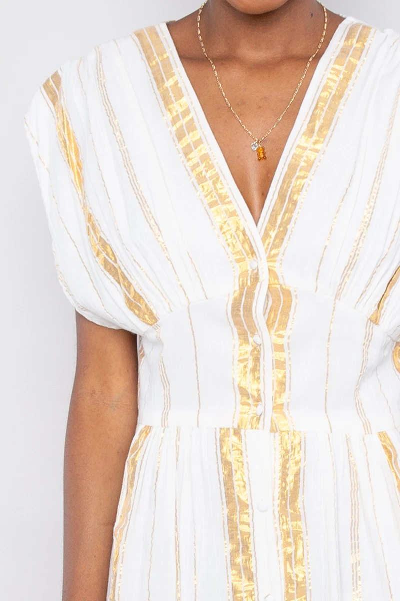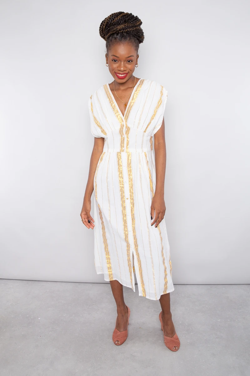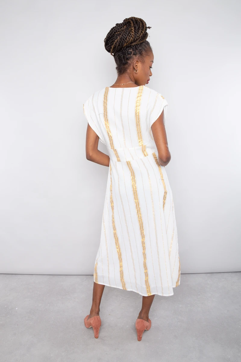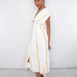 • Robe longue bohème chic sans manches, à rayures dorées, en coton