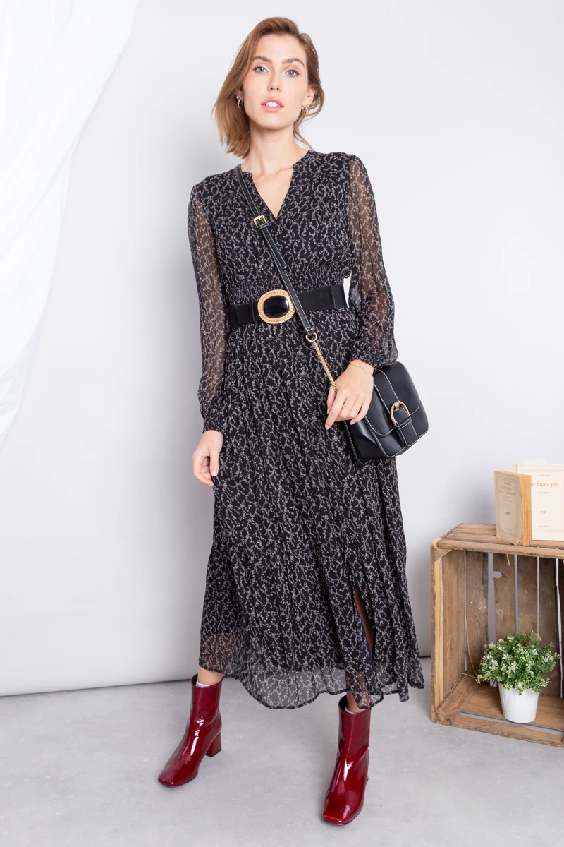 • Robe noire élégante imprimée