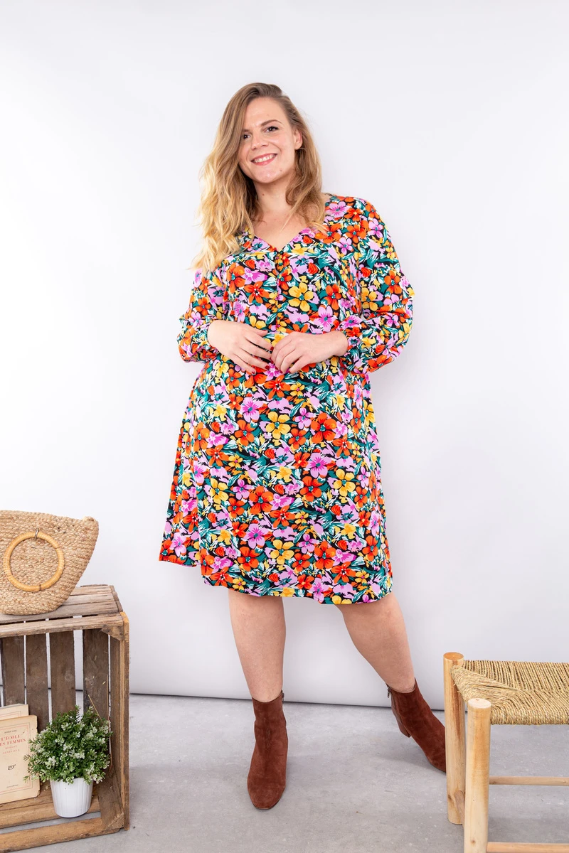 âą Robe courte Ă motifs fleuris multi couleurs