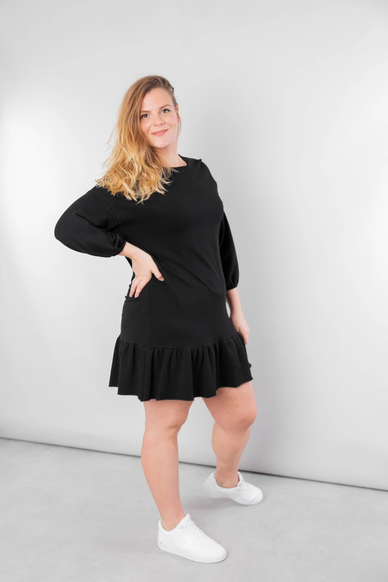 • Cette petite robe noire volantée à manches longues est un intemporel de notre garde-robe !