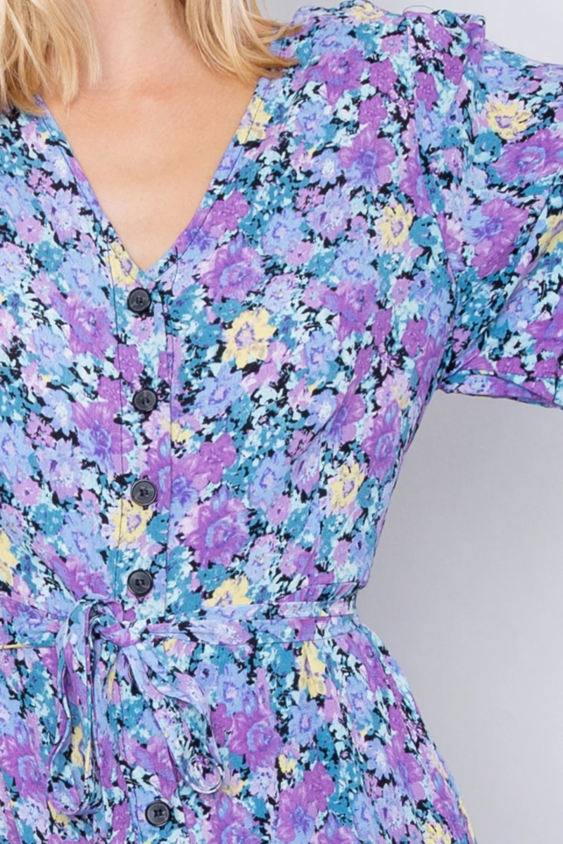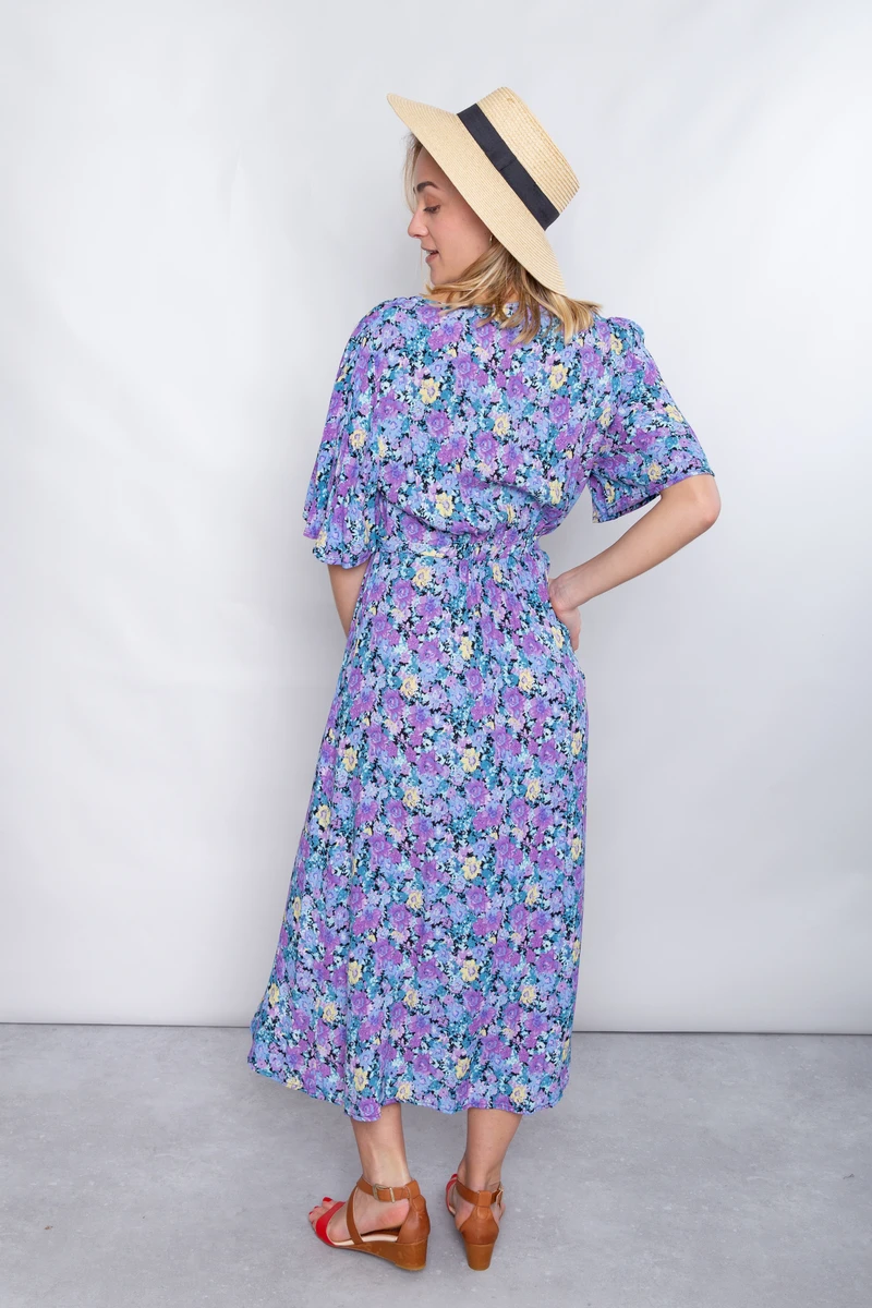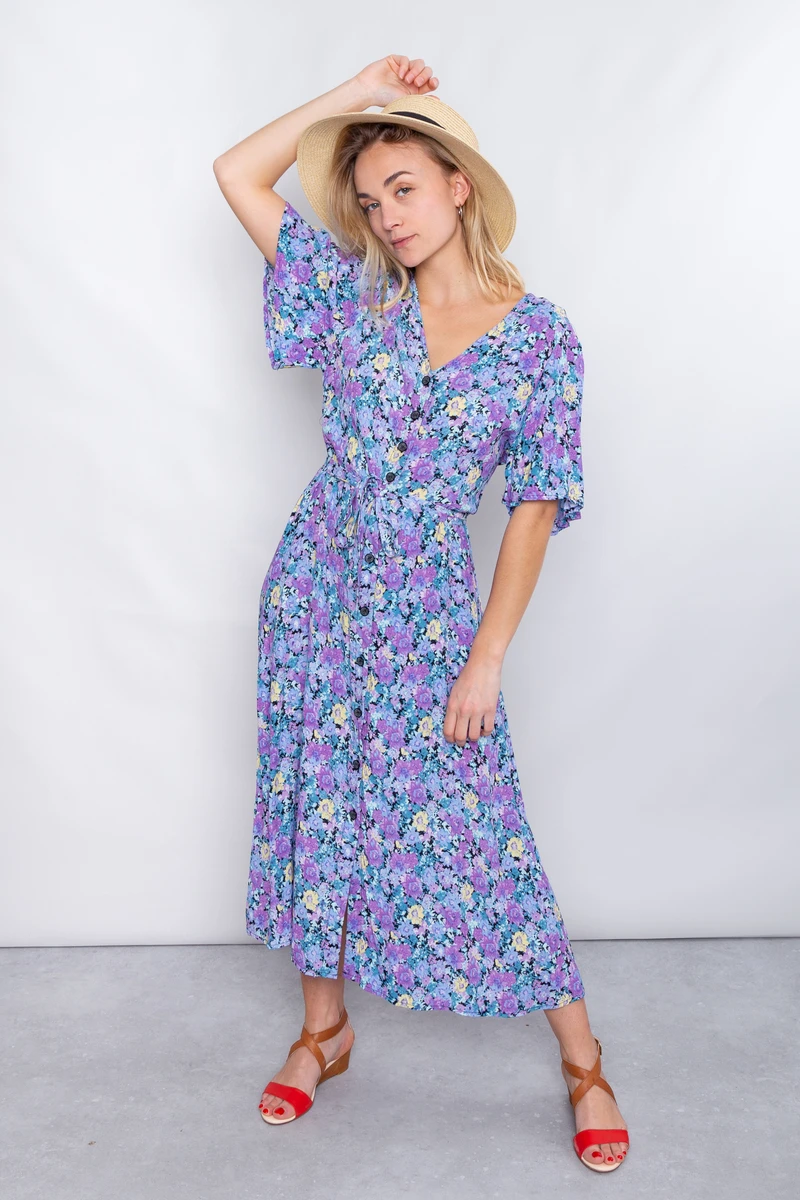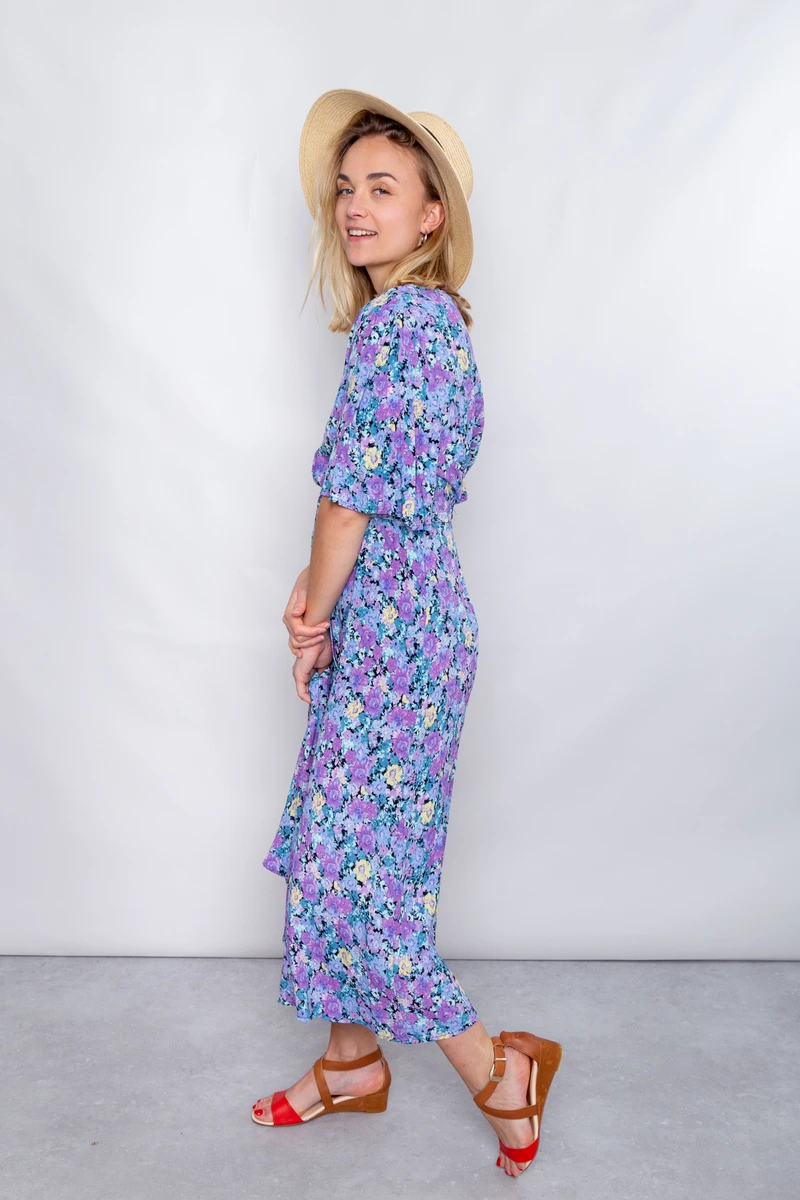 ⹠Robe midi à manches courtes imprimée fleurie lilas