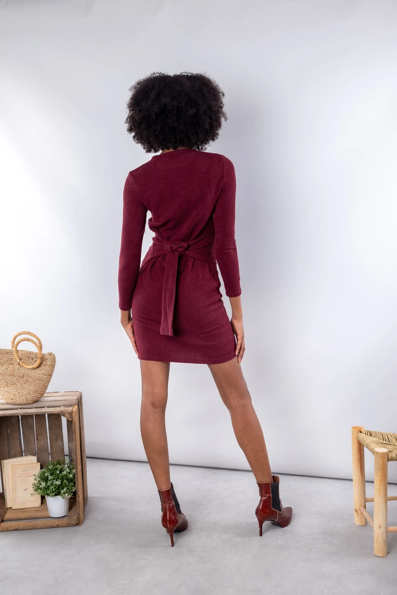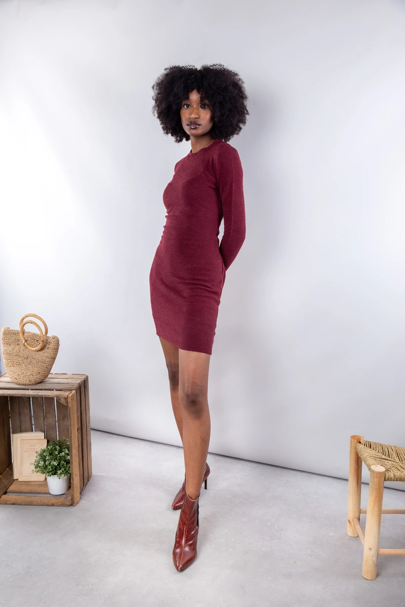 • Robe pull côtelé bordeaux