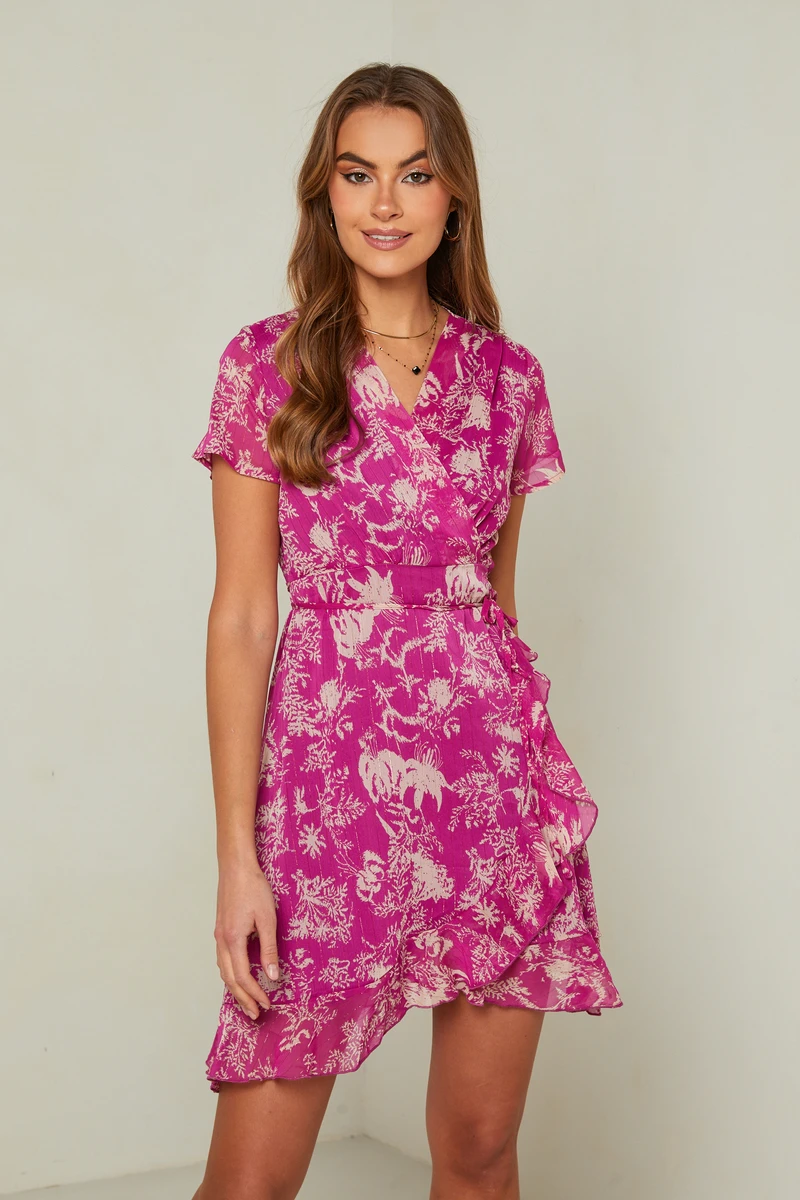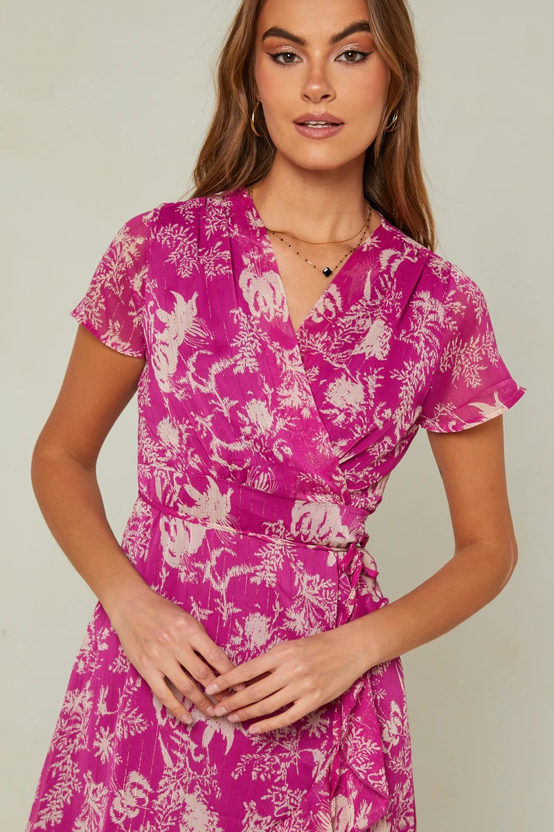 • Jolie robe cache-cœur imprimée, soft et élégante, idéale pour des occasions