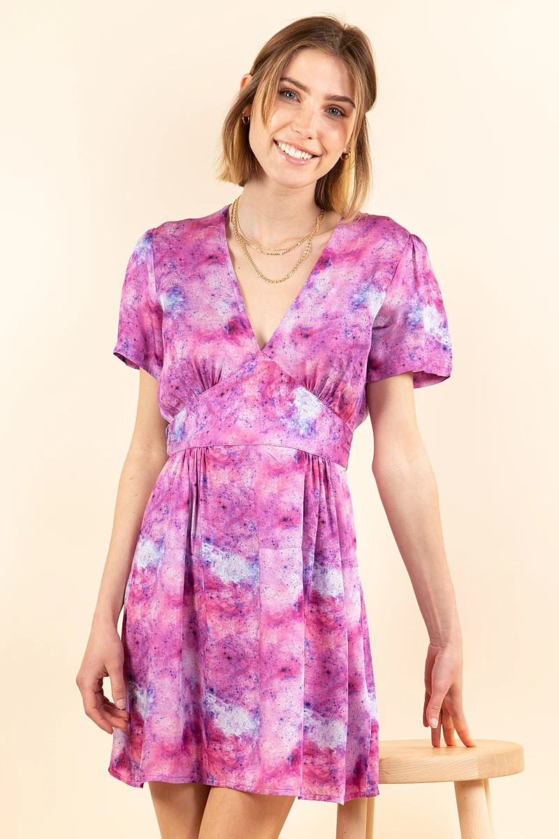 Craquez pour la robe Erin. Son imprimé rose original fera la différence. On aime beaucoup son décolleté dans le dos ultra sexy.