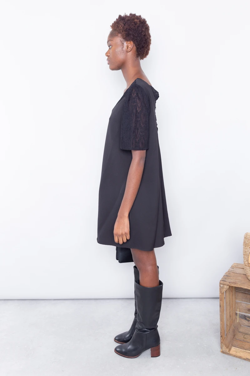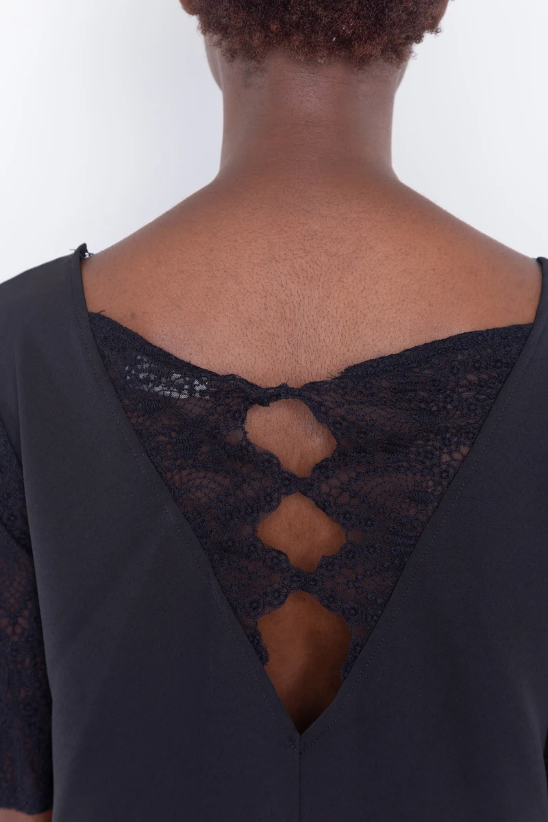 • Empiècements en résille brodée qui dévoile subtilement le dos