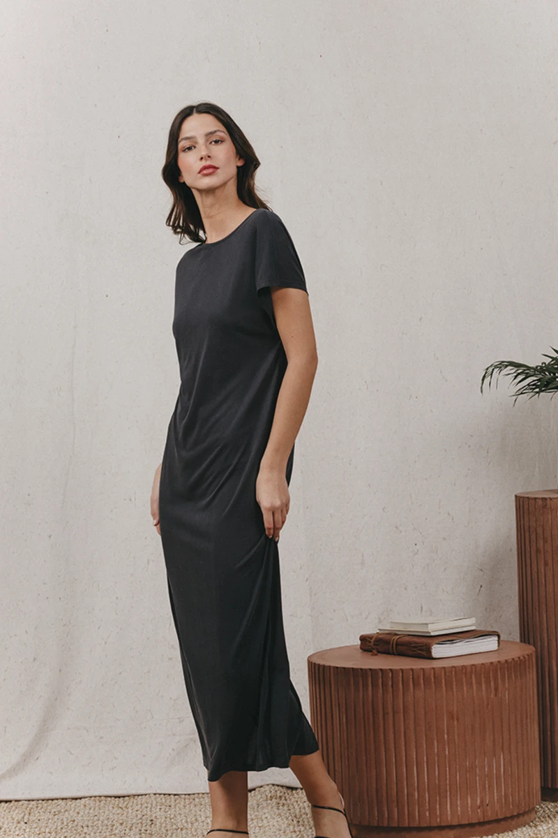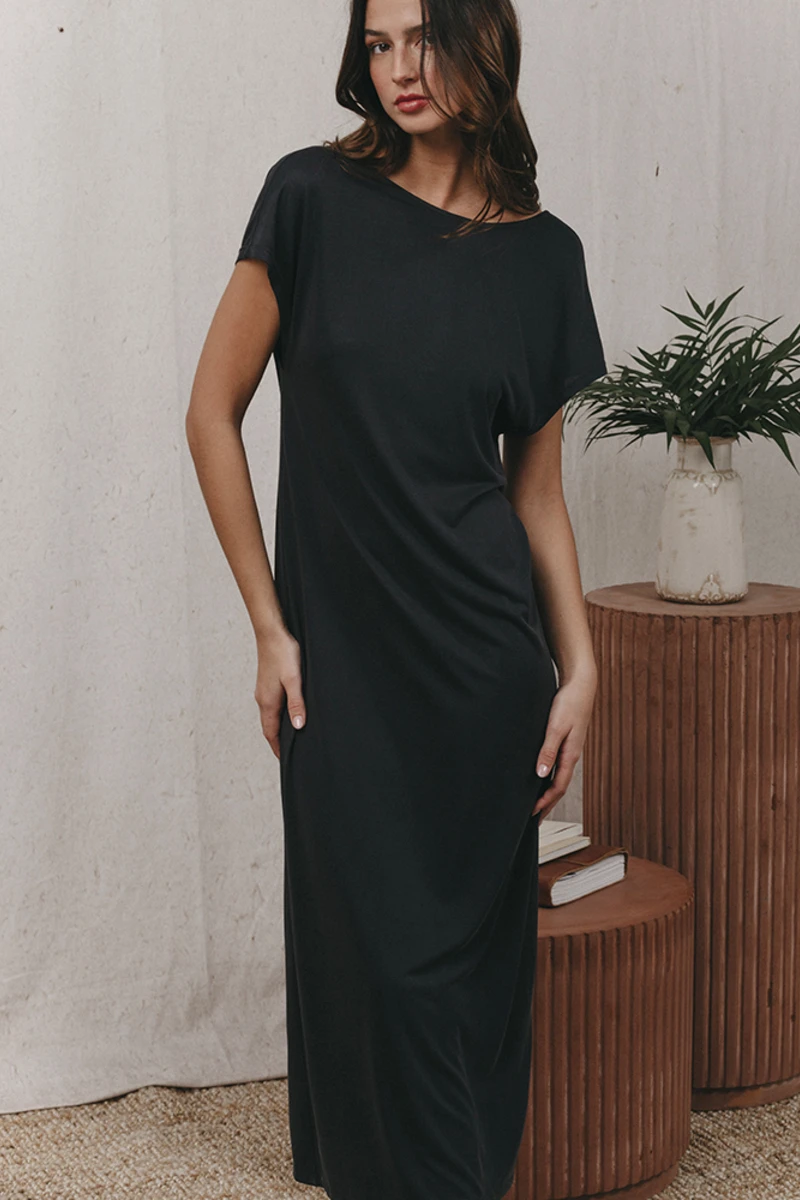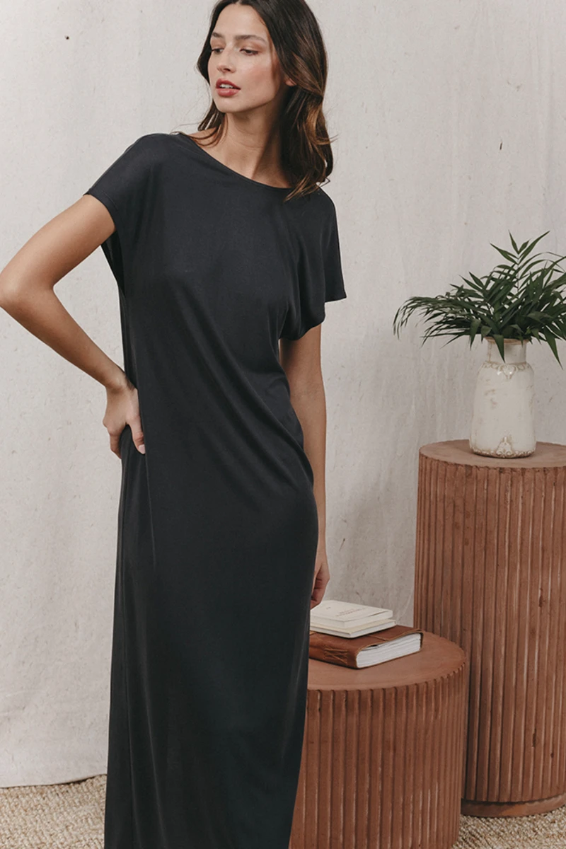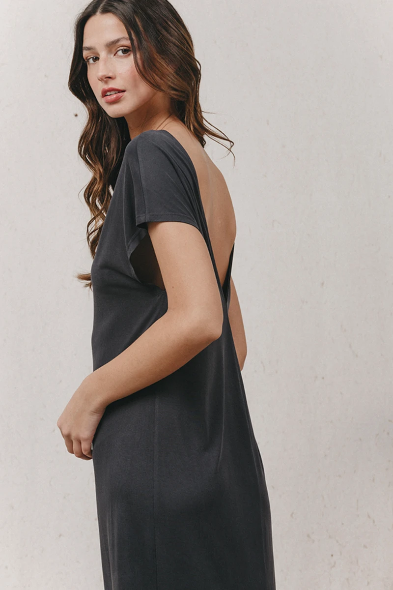 ⹠Robe longue décolletée en V au dos