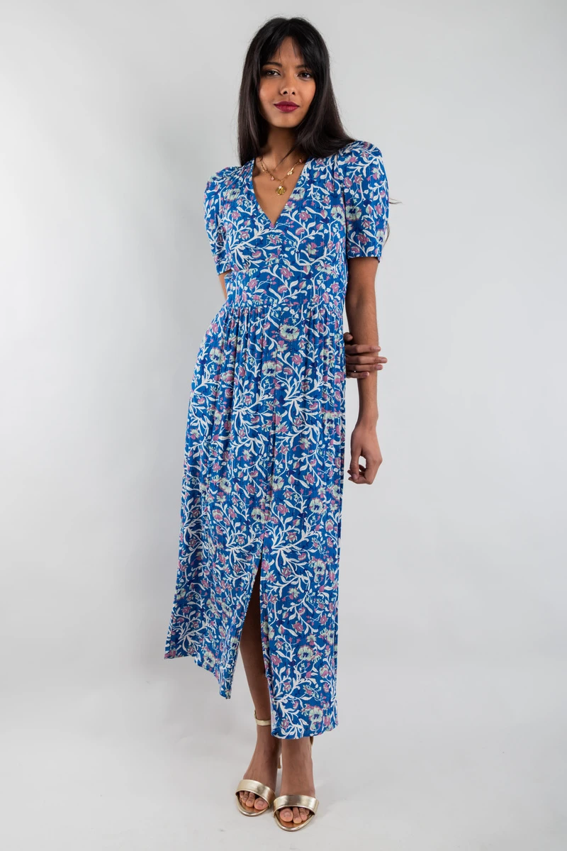 • LĂ©gèrement Ă©vasĂ©e, cette robe longue est mise en lumière et joue la carte de la brillance et d’une allure fĂ©minine