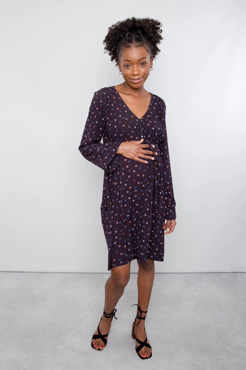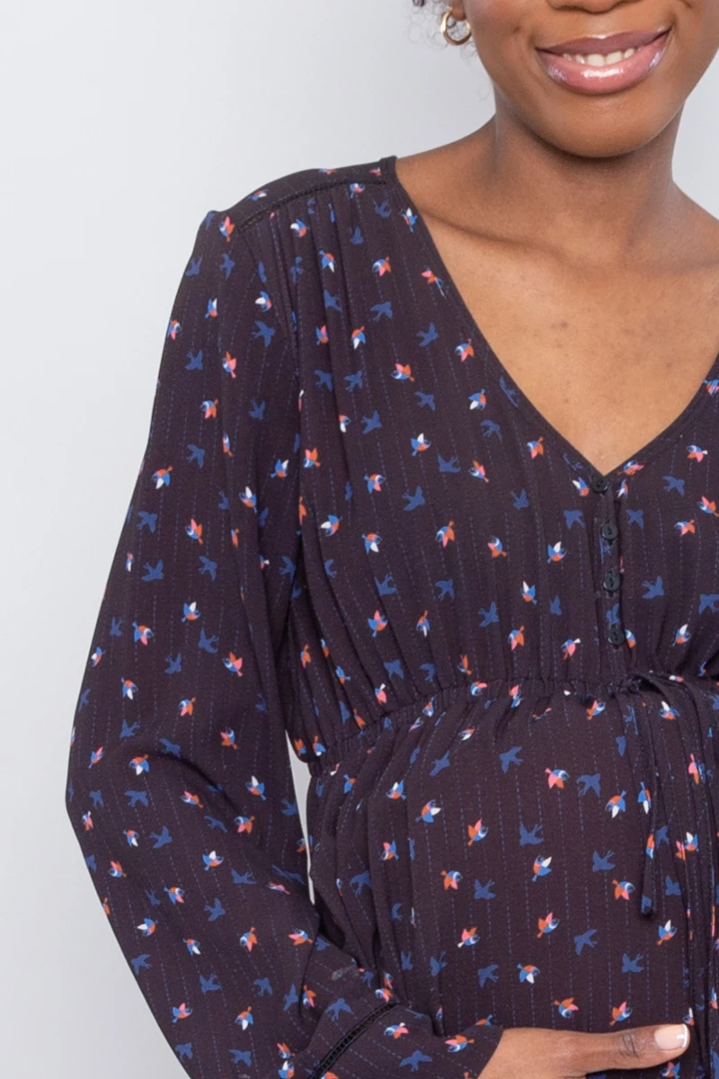 Robe Maternité De Grossesse Et D’allaitement Marine Imprimée