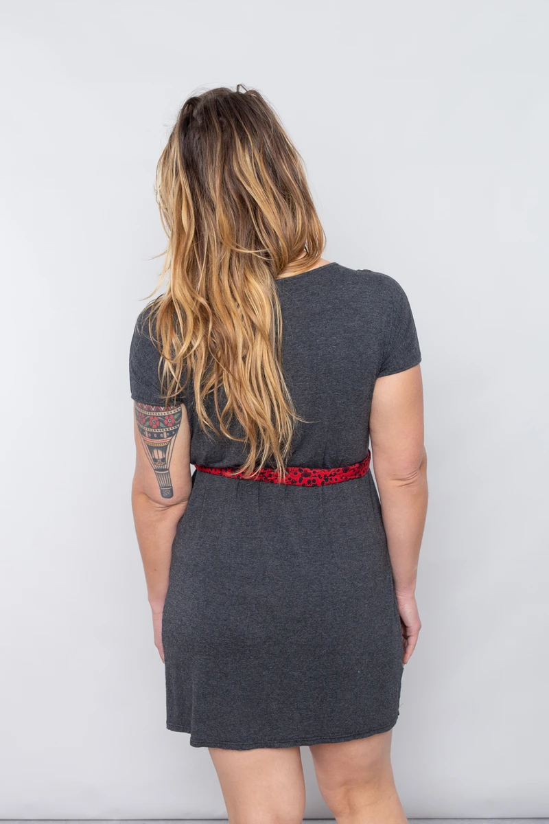 • Un lien à nouer imprimé rouge souligne la poitrine