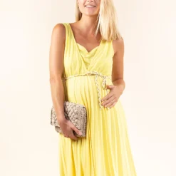 Une coupe parfaite pour cette robe de grossesse élégante de la marque Pomkin Paris. Elle est confectionnée dans un jersey ultra souple, extensible et confortable. Jupe plissée avec fine ceinture tressée à nouer sous poitrine. Décolleté en v avec brassière intérieure, idéale pour allaiter bébé confortablement.