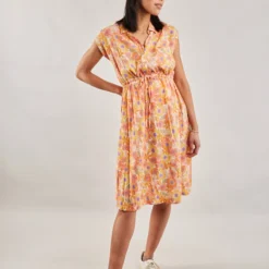 • Cintrée à la taille par une ceinture à nouer au dessus du ventre
