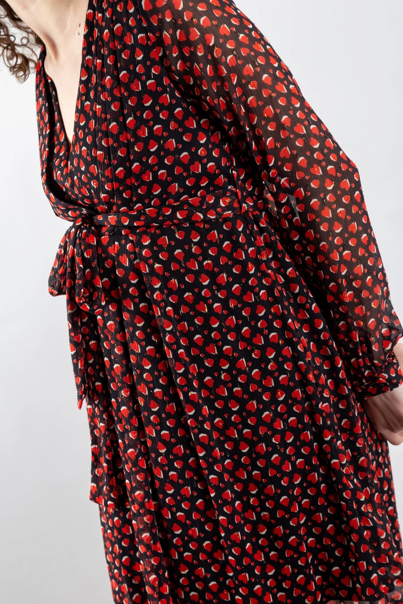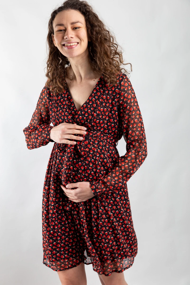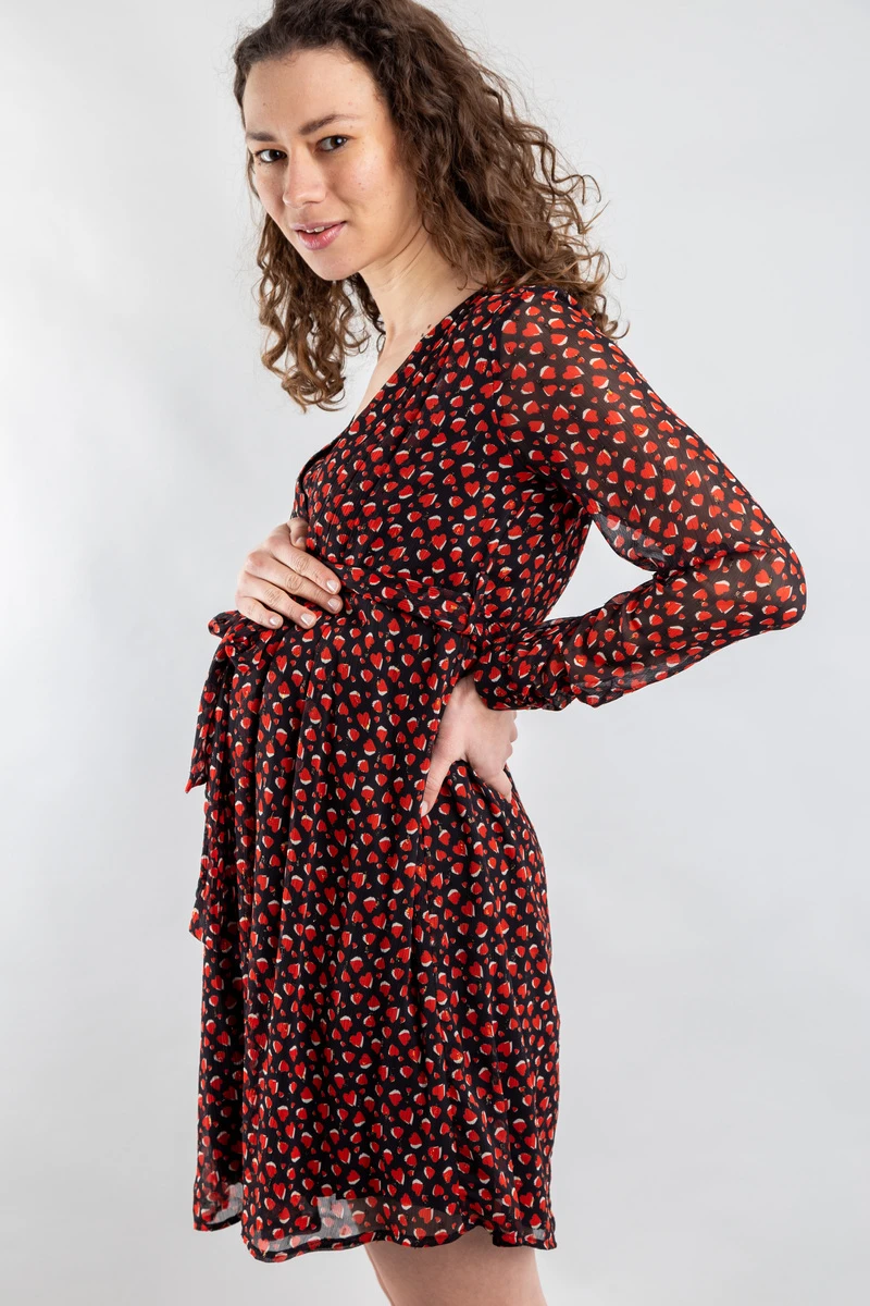 • Robe de grossesse à imprimés cœurs rouges sur fond noir