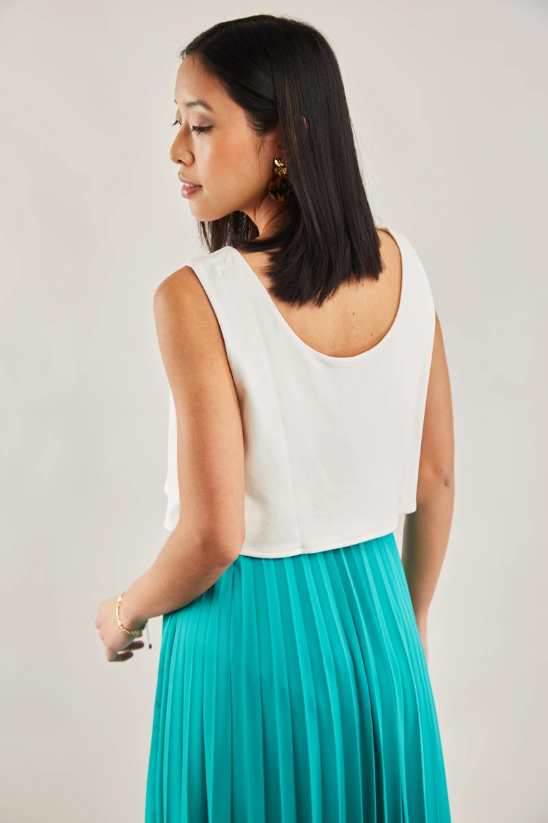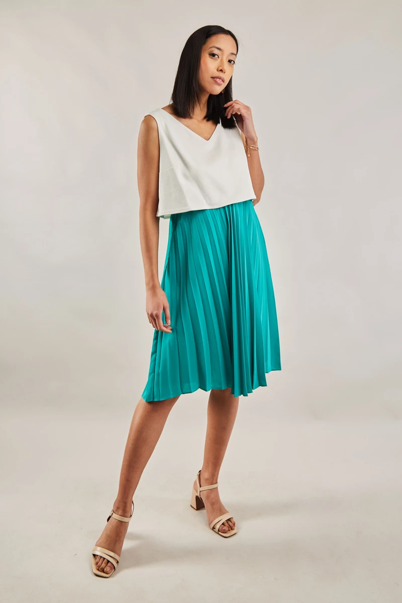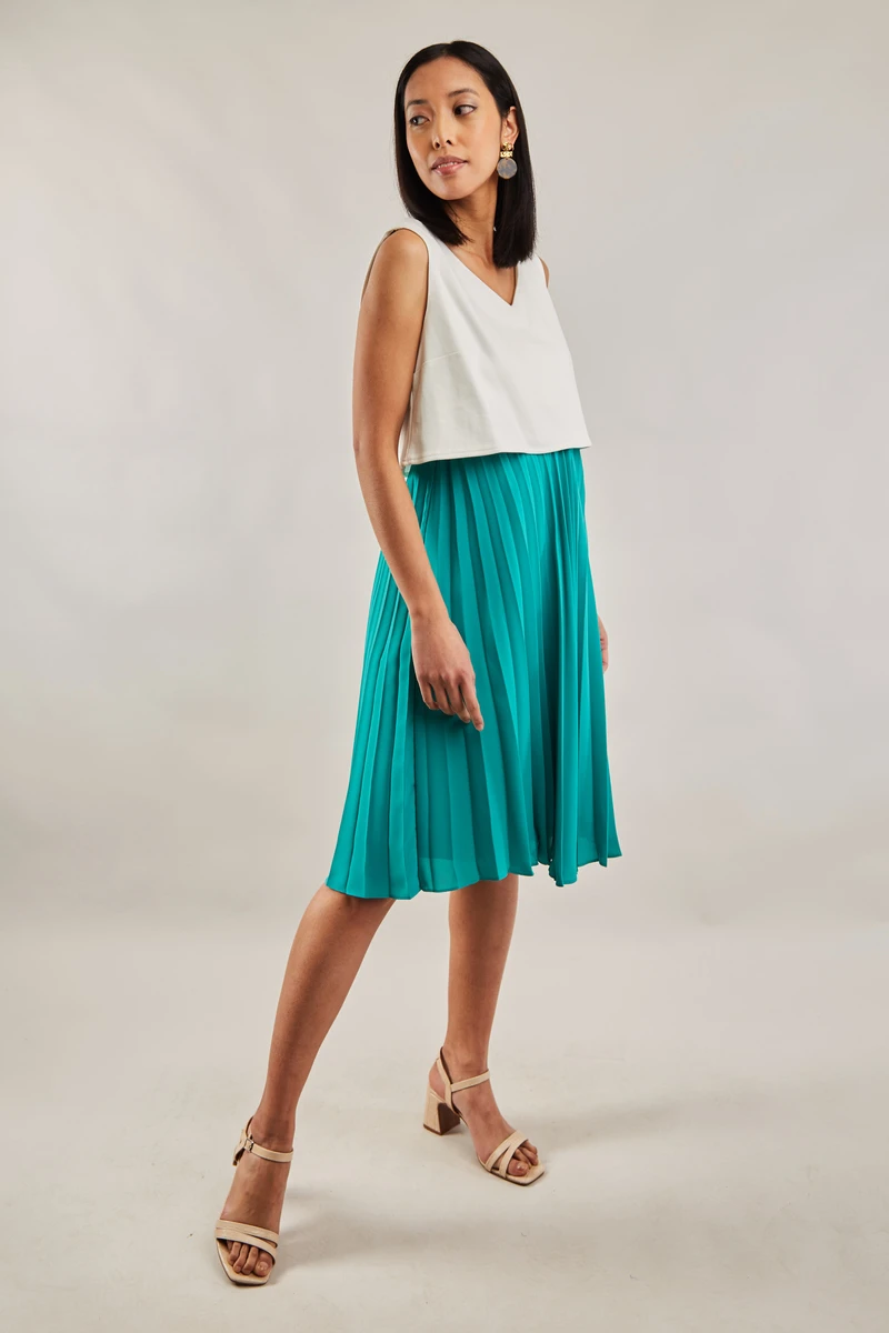 • Jupe taille haute plissée qui affine la silhouette