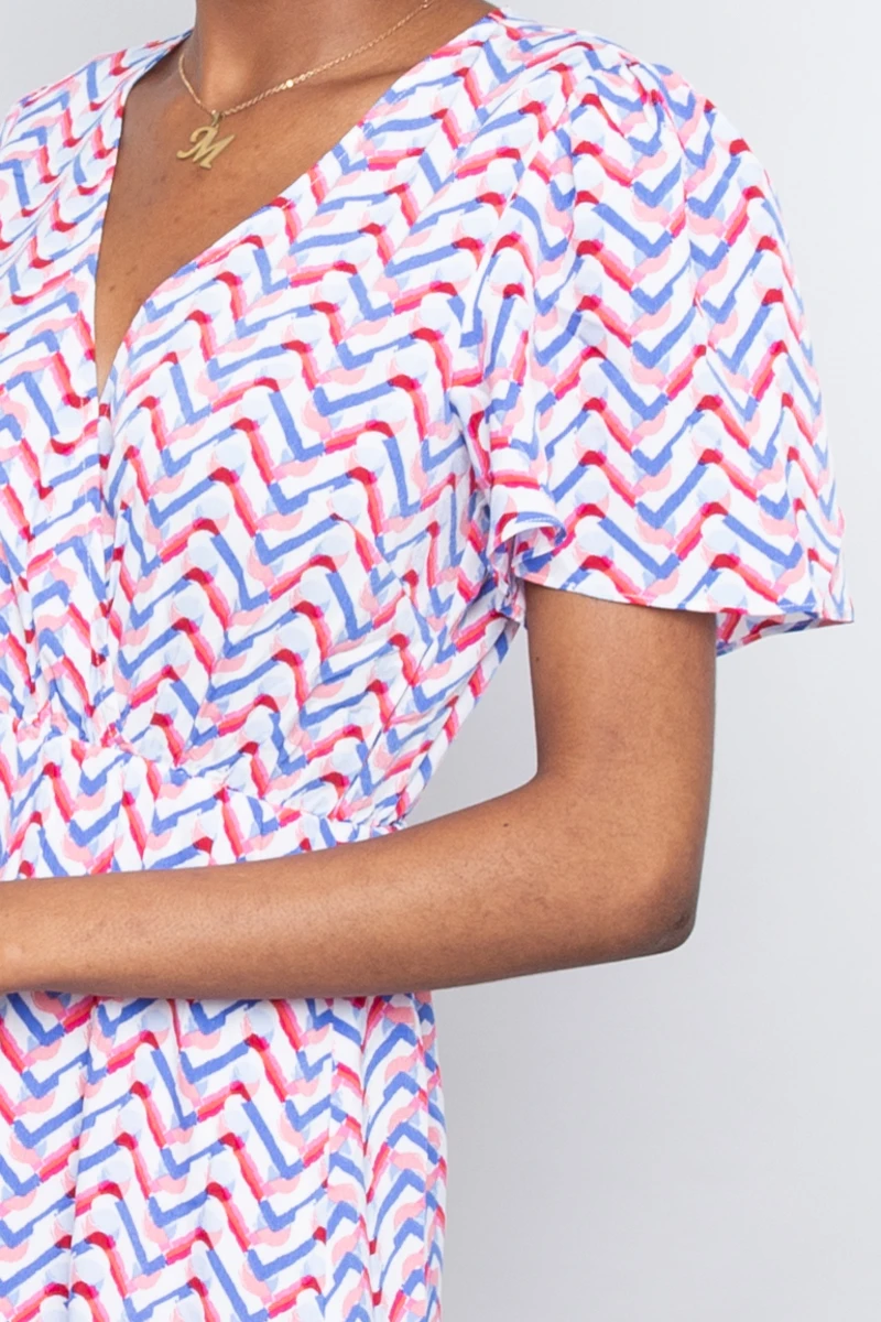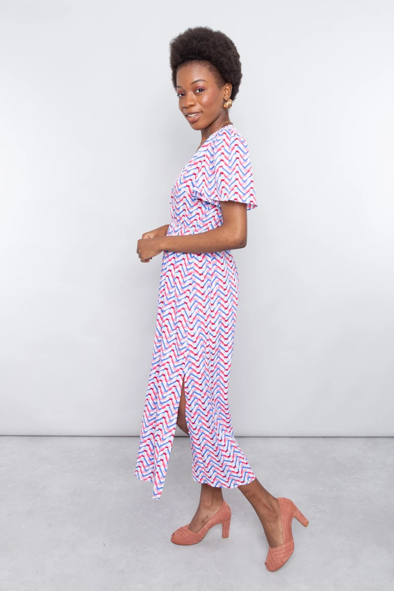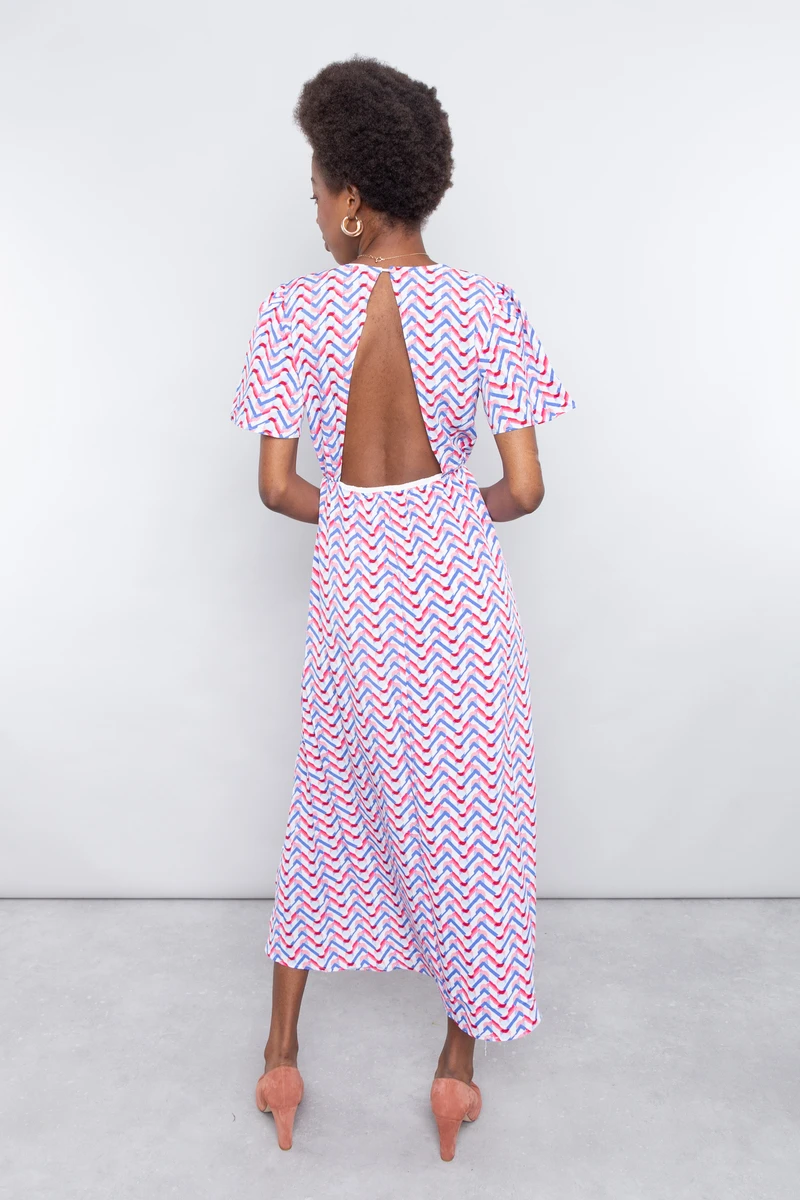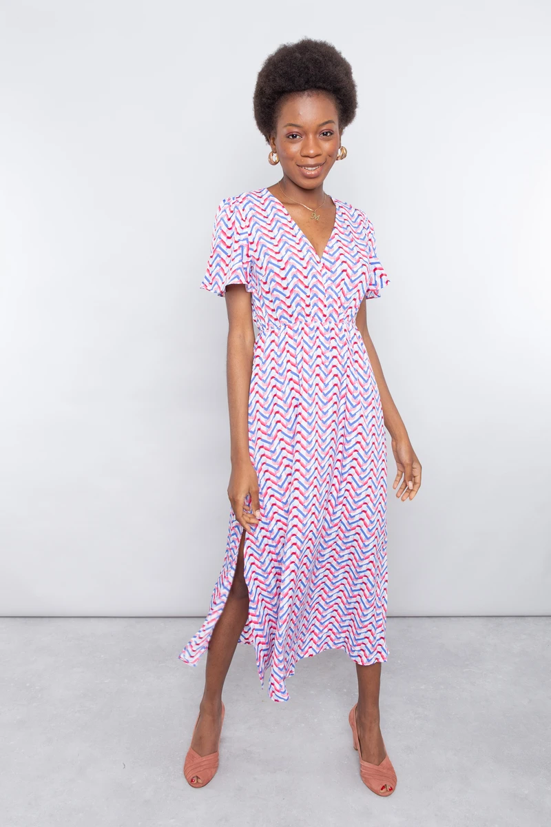 On adore l’imprimé psychédélique de la robe Mathilde.