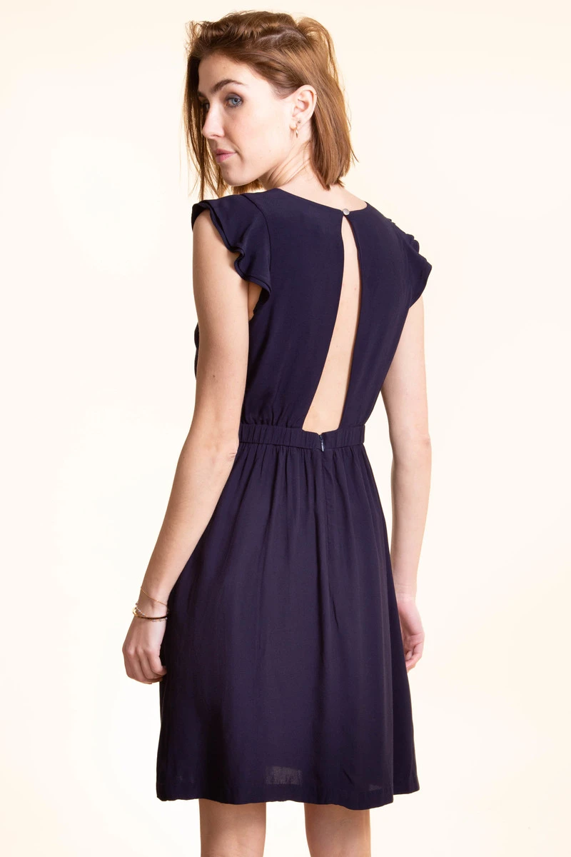 Cette robe est élégante grâce à son dos dénudé. Sa matière est soyeuse grâce à un effet satiné.