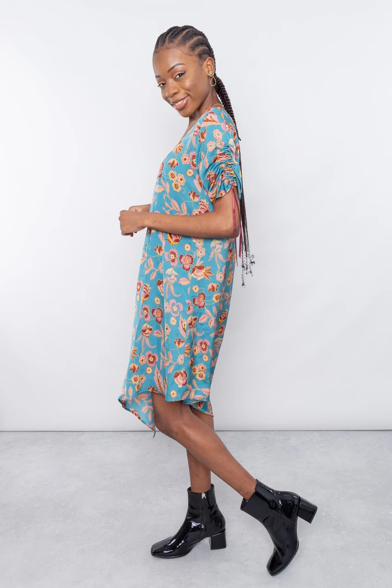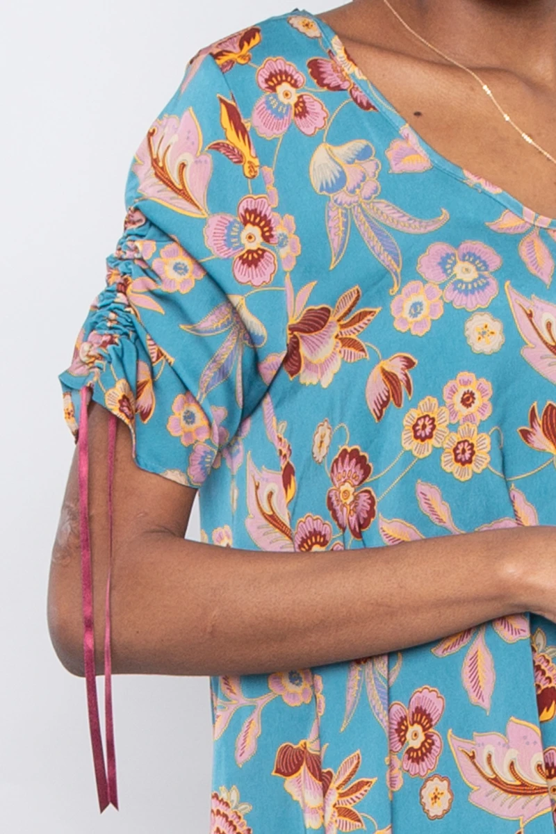 • Robe asymétrique bleue imprimée fleurs