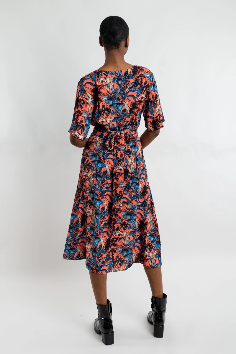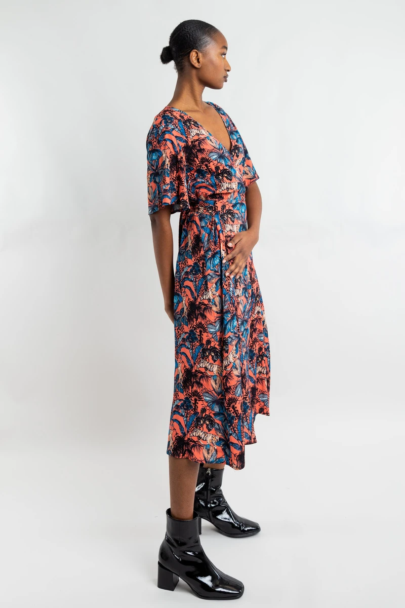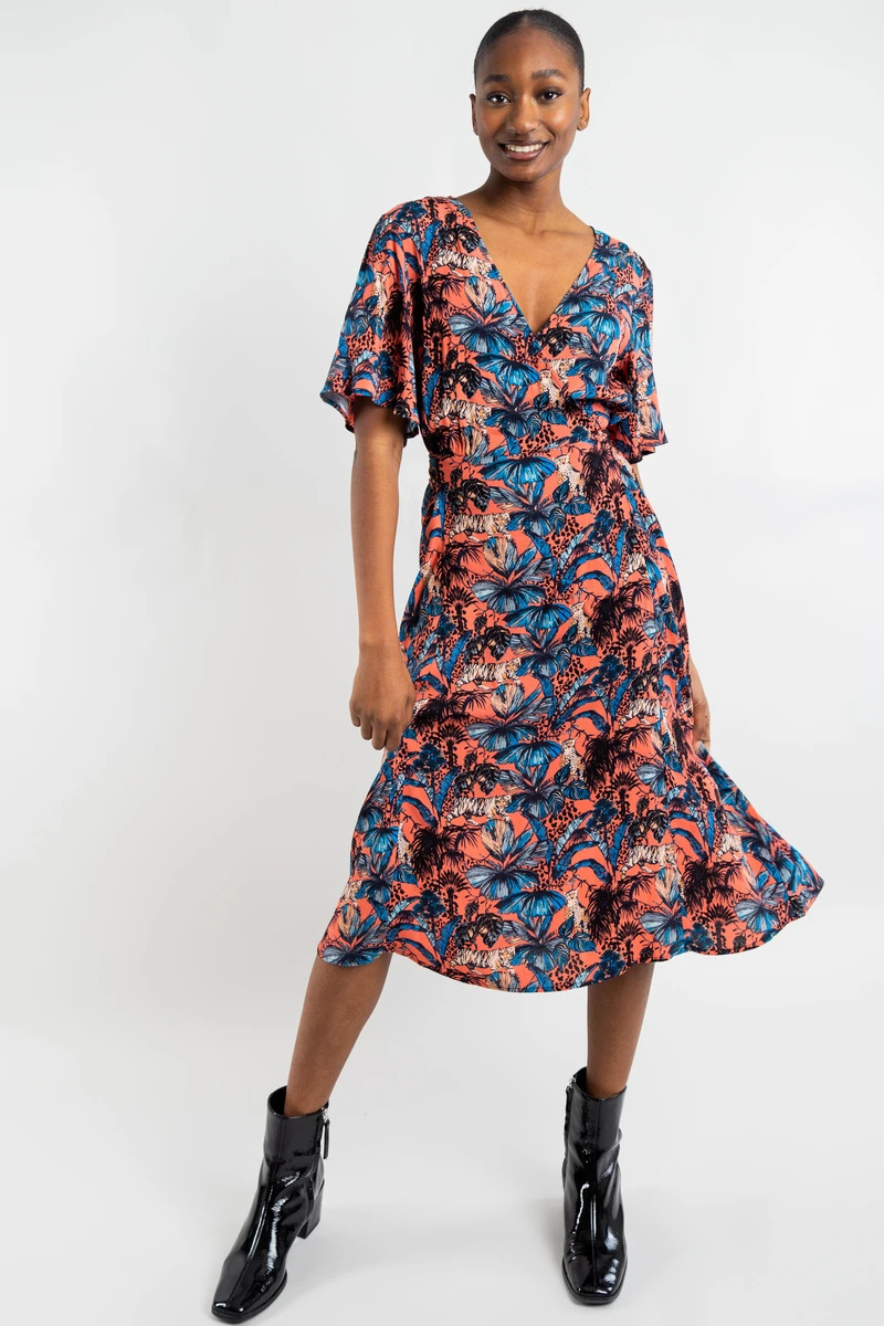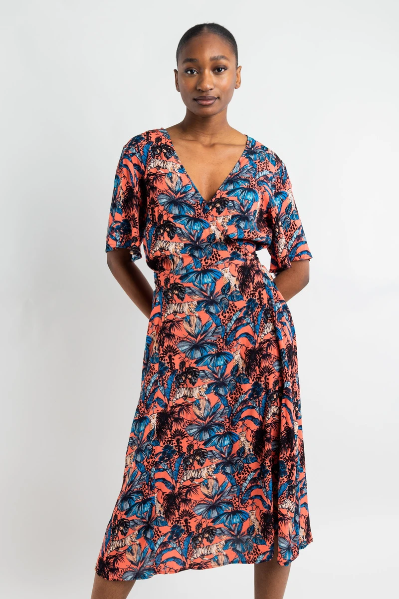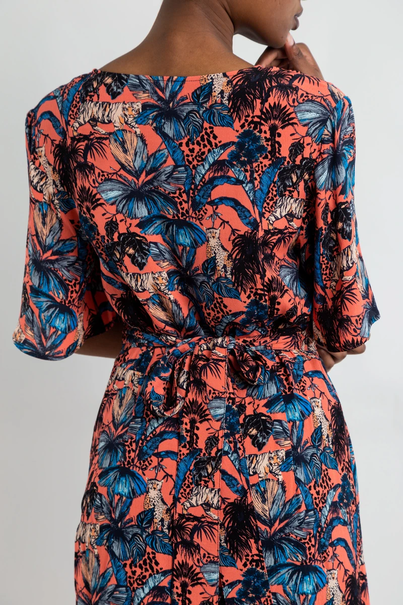• La robe mi-longue rose saumon avec imprimés sauvage est une pièce originale et estivale qui apportera une touche de gaieté et de fraicheur à votre garde-robe