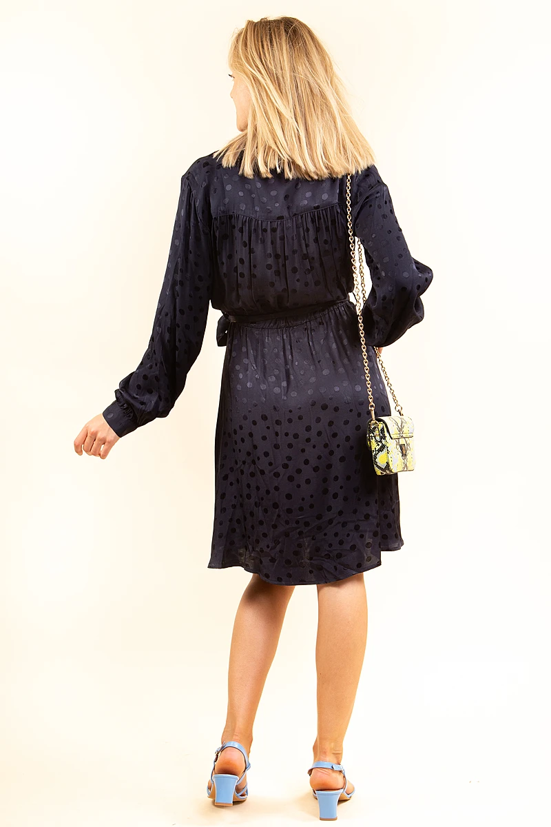 Coup de cœur pour cette robe marine élégante à l’imprimé discret.
