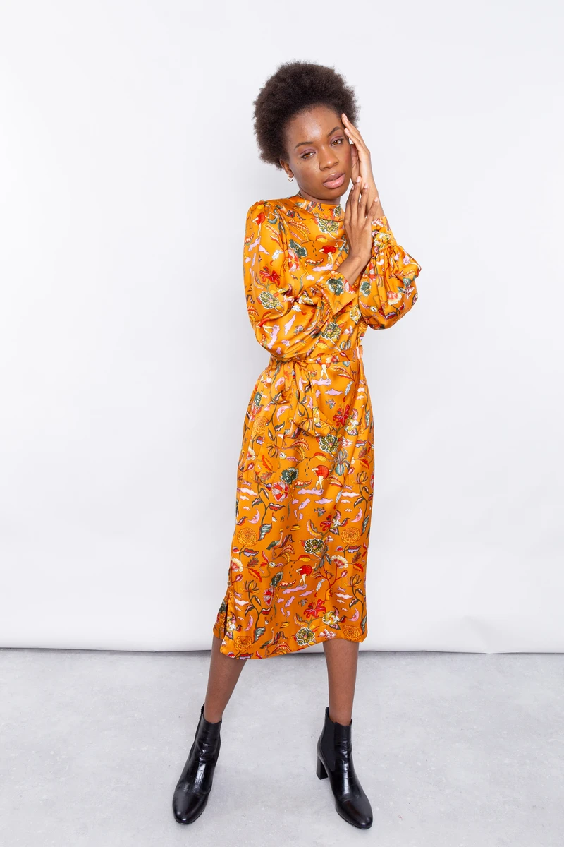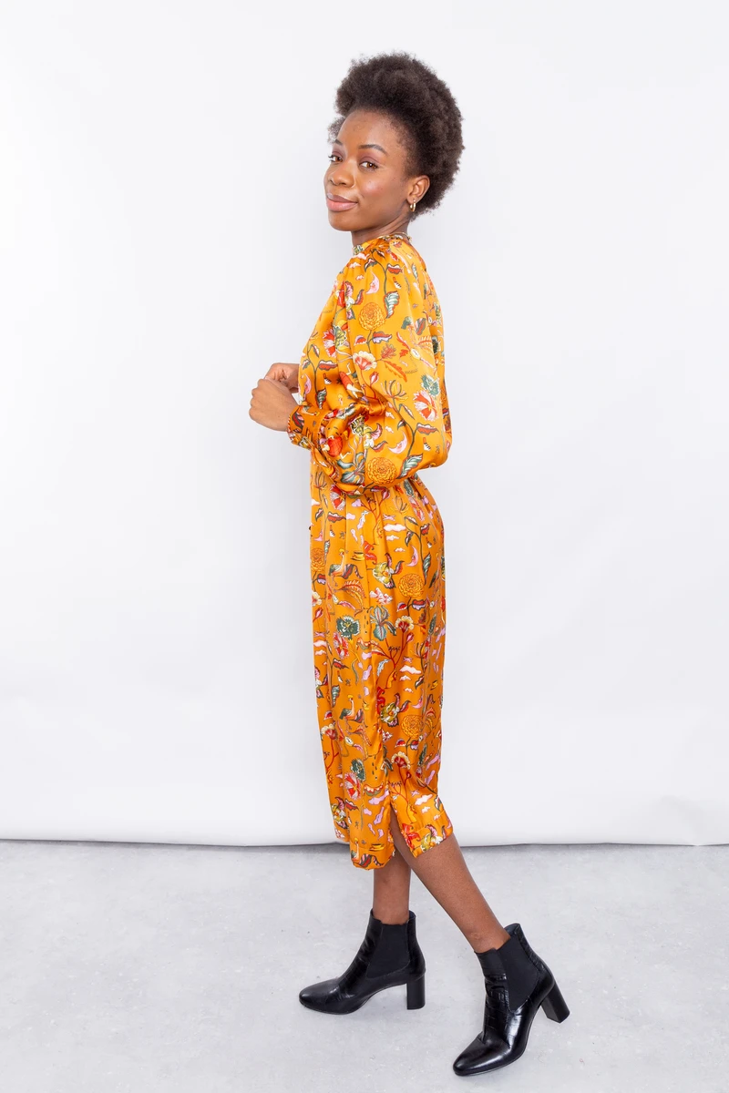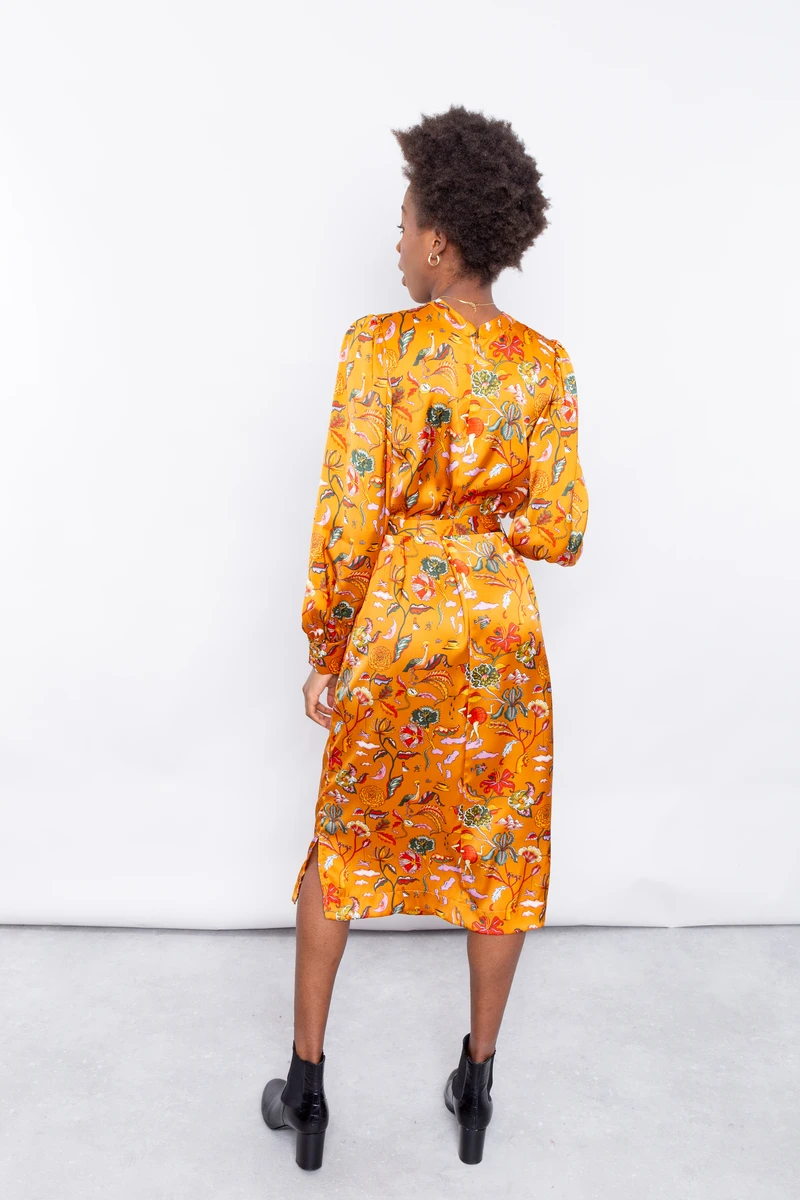 Nous avons le plaisir de vous proposer cette superbe robe midi colorée à la coupe cintrée très élégante.
