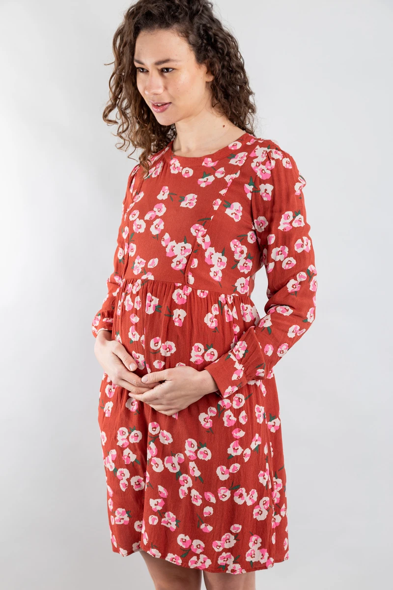 • Un style féminin avec un secret d’allaitement astucieux, la robe de grossesse et d’allaitement à fleurs rouille de chez Séraphine est conçue pour être ajustée et flatteuse pendant la grossesse et au-delà