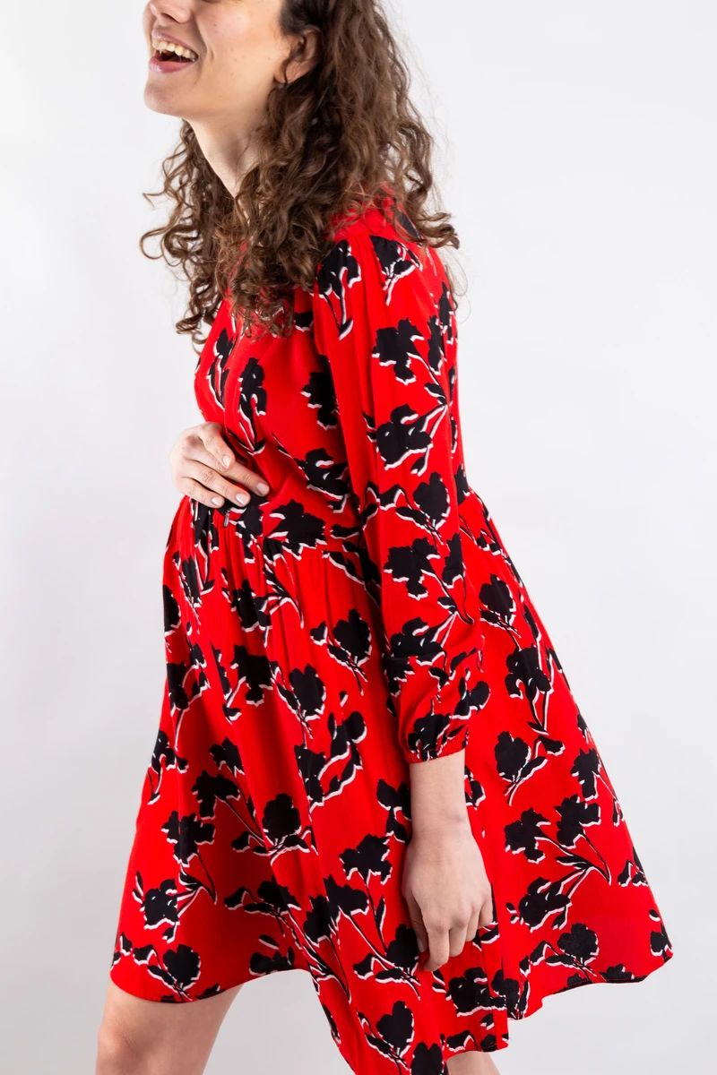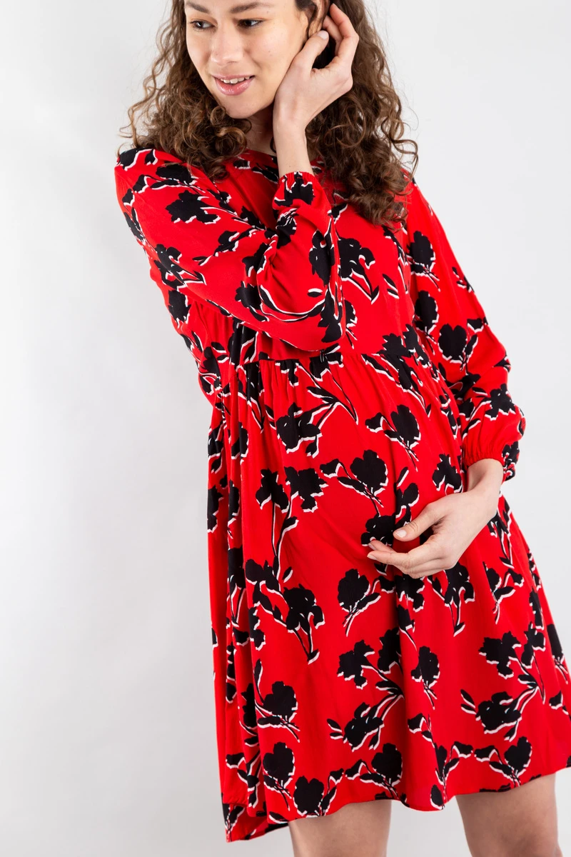 • Conçue pour les mamans, notre robe grossesse et allaitement volantée à imprimé floral rouge est idéale pour tous les jours