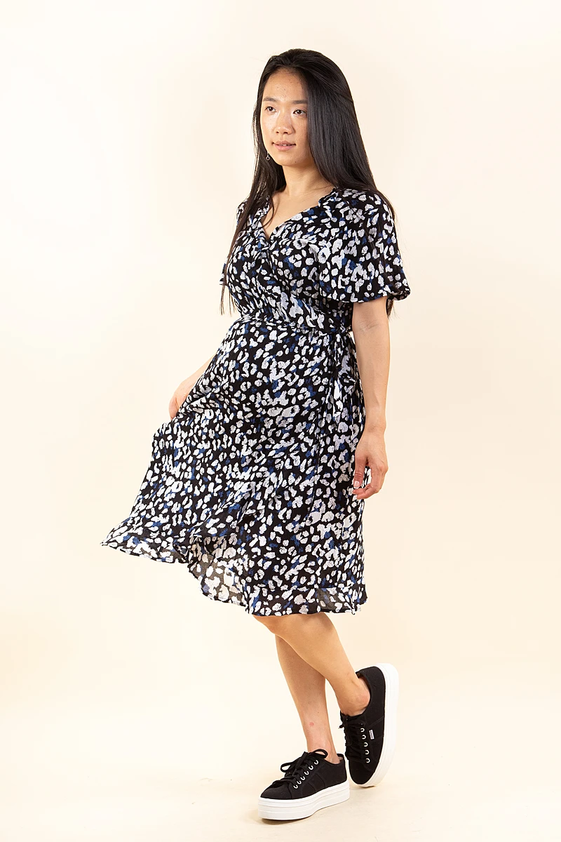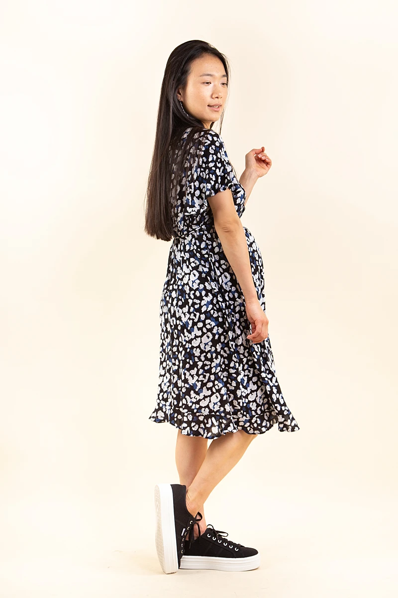 Cette robe de maternité légère est dotée d’un imprimé léopard tendance. Sa coupe portefeuille fermée par un lien est ornée de volants le long de l’ourlet. Le pan croisé permet d’allaiter facilement votre bébé. La robe à un décolleté en V ultra féminin, elle se combine à merveille des bottines ou des sandales en daim.