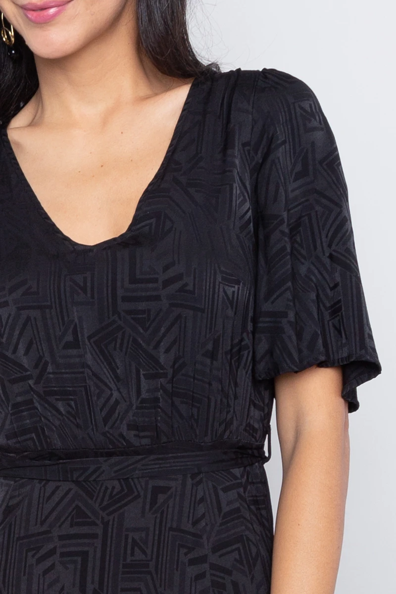• Taille cintrée par une ceinture en tissu à nouer