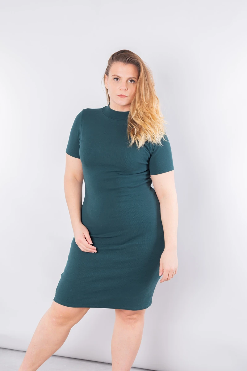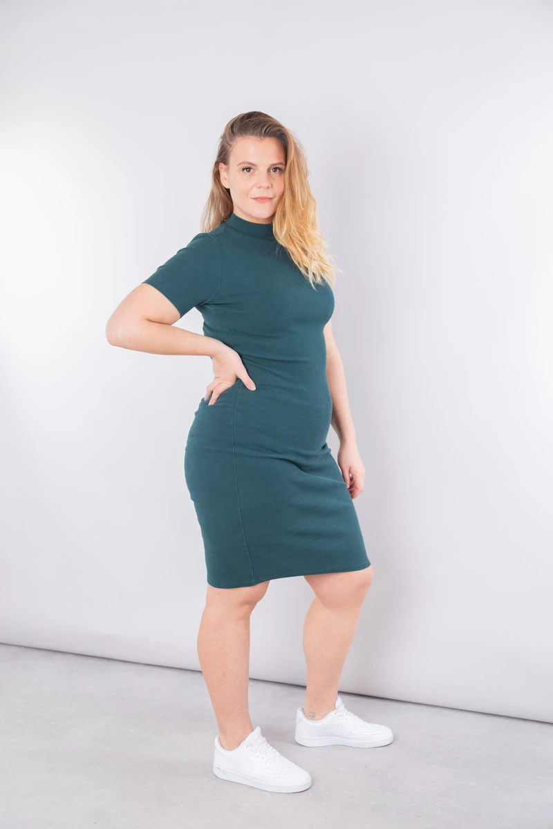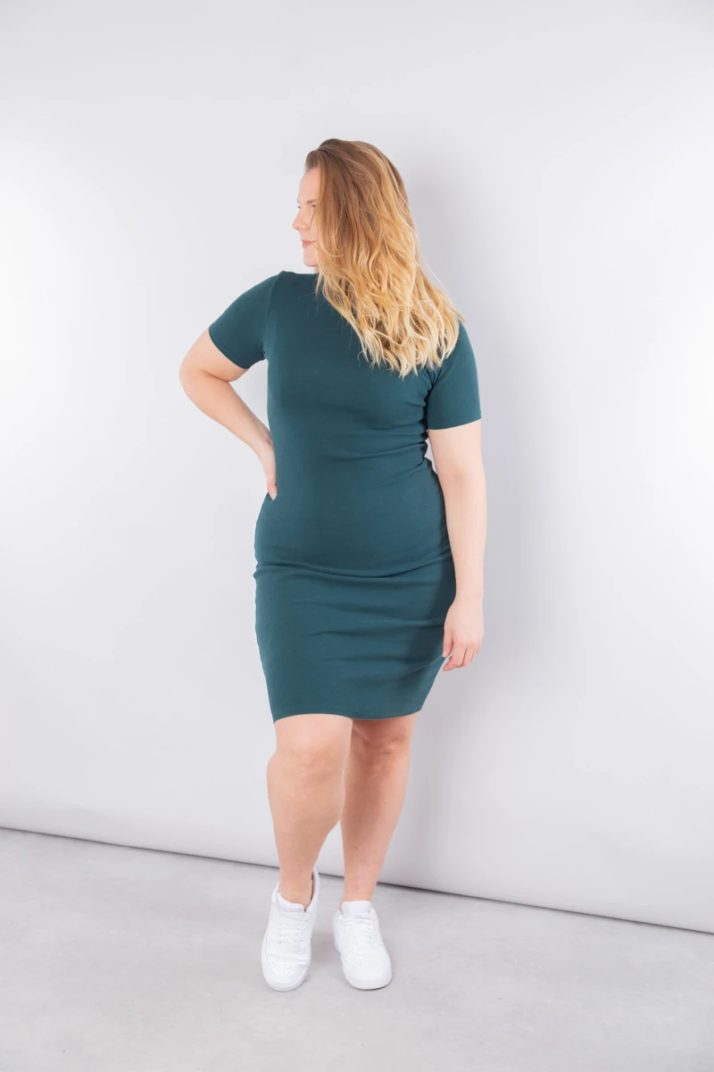 • Cette robe courte bleue turquoise côtelée à manches courtes est parfaite pour un look élégant et décontractée